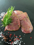 zarte Minutensteakerl von der Hirschkeule an Rosmarinmarinade