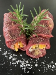 feine Hirschrouladen gefüllt mit Gemüse, Gurkerl & Speck!