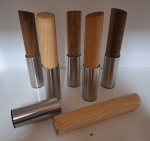 Passendes Gegenstück aus Edelstahl befindet sich am Holzstück.